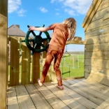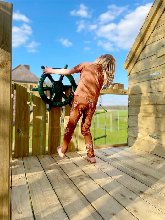 Transformez chaque coin en pont de navire pirate ! Le grand gouvernail pour enfants Jumbo, d’un diamètre de 53 cm, attire immédiatement l’attention et, grâce à son effet sonore lors de la rotation, plonge les enfants dans le jeu. Parfait pour le jardin, l’aire de jeux, la structure d’escalade ou la chambre.