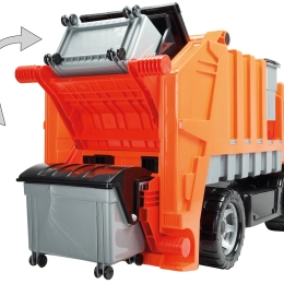 Le chargeur arrière et le chargeur latéral avec bacs fournis permettent aux enfants de collecter et de vider les “déchets” de manière réaliste et de vivre une véritable routine de ripeur.
