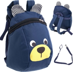 Adorable petit sac à dos pour enfants avec motif d’ourson et petites oreilles à rayures, idéal pour la maternelle et les sorties. Il possède une construction légère, des bretelles réglables et une grande poche principale zippée. Inclus, une laisse de sécurité amovible pour des promenades plus sereines avec les tout-petits.