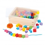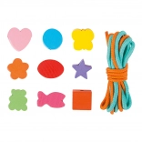 Les petits créateurs peuvent s'amuser pendant des heures avec ce kit en bois. La boîte contient 81 perles colorées et 2 cordons, permettant aux enfants de créer une variété de bijoux selon leurs envies.