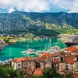 Le puzzle dévoile une scène pittoresque de la ville portuaire de Kotor, avec ses toits rouges emblématiques et ses montagnes verdoyantes.