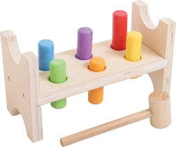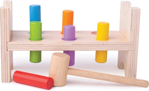 Un marteau en bois ludique et sûr pour les tout-petits qui développe la coordination œil–main et la motricité fine. Grâce aux chevilles multicolores et au solide maillet en bois, les enfants entraînent la précision et la force de la prise. Le jouet possède des bords arrondis, est fabriqué en bois de qualité et répond aux normes européennes de sécurité.