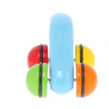 Des petites roues colorées avec anneau en caoutchouc réduisent le bruit, protègent le sol et assurent un mouvement fluide de la voiture – idéales pour l’appartement et la chambre d’enfant.