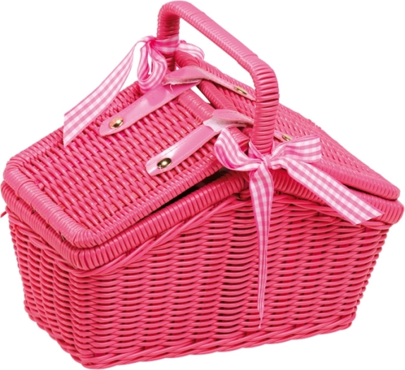Ce panier de pique-nique rose est le compagnon idéal pour les sorties avec des poupées et pour les goûters-thé des enfants. Son design moderne inspiré des années 70 associé à une vaisselle en métal à motif floral ravira les petits hôtes et hôtesses. Le panier en rotin synthétique est suffisamment spacieux pour accueillir tout le service ainsi que de petites gourmandises.