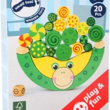 Cette adorable grenouille d’équilibre est un jouet idéal pour entraîner stabilité et précision. Les enfants lancent le dé, choisissent la bonne couleur et posent les cylindres de façon à ce que la grenouille reste en équilibre. Sa taille compacte tient parfaitement dans les petites mains et offre des heures de jeu créatif.
