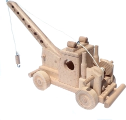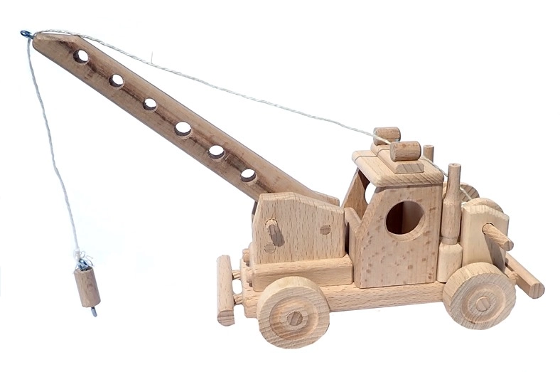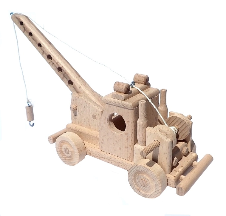 La grue est équipée d’une flèche fonctionnelle et d’un crochet sur corde pour soulever de petits objets – idéal pour développer l’imagination et la motricité fine.