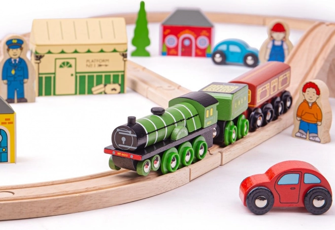 Le Flying Scotsman est l’un des trains les plus célèbres de son époque et, grâce à ce circuit en bois, les enfants peuvent revivre ses trajets légendaires. Le set comprend un train magnifiquement réalisé qui vous emmènera dans une balade nostalgique à travers viaducs et paysages naturels. Des gares rétro, des maisons et des voitures bordant la voie en font également partie.