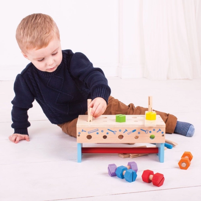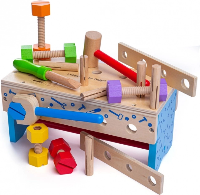 Le jouet Bigjigs Toys apporte un établi en bois de qualité avec des outils, qui de manière ludique soutient le développement des compétences créatives et motrices chez les enfants. Il comprend un marteau, une clé et diverses vis que les enfants peuvent facilement utiliser pour différentes activités de construction.