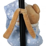 L'ourson porte un pyjama bleu avec un motif étoilé et lunaire qui crée une impression apaisante et est un compagnon idéal pour la chambre des enfants.