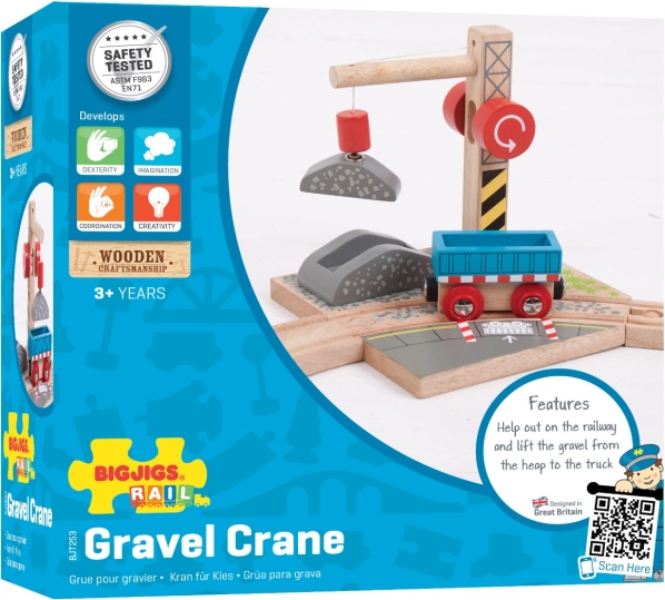 La grue en bois Bigjigs Rail avec système de gravier est un excellent complément à toute collection de trains pour enfants. Cette grue de qualité est équipée d'une poulie magnétique qui permet de soulever et abaisser facilement les charges, favorisant un jeu créatif et interactif.