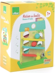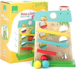 La maison en cascade en bois VILAC enchante les tout‑petits par la course amusante des balles et son design séduisant. Elle propose 3 rampes de chaque côté, le long desquelles les balles en bois dévalent de haut en bas et, à l’arrivée, une clochette en métal tinte. Ce jouet aux couleurs pastel développe l’habileté et la pensée logique et offre des heures de jeu joyeux.
