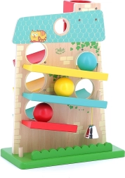 Découvrez la magie du mouvement et du son avec la maison en cascade VILAC. Grâce à une conception ingénieuse, les balles se déplacent en douceur d’un côté à l’autre sur trois rampes et terminent leur course par le tintement d’une clochette en métal, que les enfants adorent. La fabrication robuste en bois et métal garantit une longue durée de vie et un jeu en toute sécurité.
