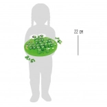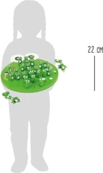 Un plateau en bois coloré en forme de grenouille avec des fleurs et des petits insectes motive à jouer et stimule l’imagination. Grâce à la disposition claire des trous, les enfants s’orientent facilement.