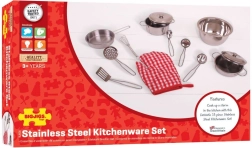 Un set de cuisine pour enfants en métal au rendu professionnel qui ravira les petits chefs et stimulera leur imagination. Il comprend 13 pièces, dont une manique pratique, répond aux normes de sécurité européennes et est idéal pour le jeu d’imitation culinaire. Métal résistant, développement de la créativité et de la motricité, excellent pour le jeu de rôle.