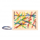 Découvrez un jeu créatif avec cette planche à lacer en bois de haute qualité, qui développe la motricité fine, la coordination œil–main et la pensée créative. Les lacets colorés peuvent être passés pour créer différentes formes, motifs ou figures et servent aussi parfaitement de training pour faire ses lacets.