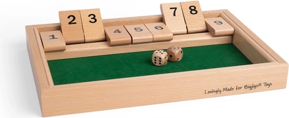 Découvrez un divertissement familial intemporel avec Shut the Box. Le but est, après un lancer de deux dés, d’abaisser un ou deux clapets dont la somme correspond au résultat du lancer. On joue jusqu’à ce qu’il ne soit plus possible d’abaisser d’autres nombres – la somme restante est inscrite comme points de pénalité. Gagne le joueur avec le score le plus bas.