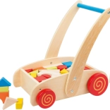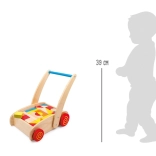 Découvrez l’outil idéal pour les premiers pas : un chariot de marche en bois avec un plateau rempli de blocs colorés. La construction robuste en bois massif et contreplaqué offre de la stabilité, tandis que les blocs en hêtre de différentes formes (env. 5–10 cm) invitent au jeu créatif. Grâce à une poignée confortable à 39 cm de hauteur, les enfants se sentent confiants et en sécurité.