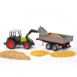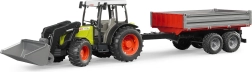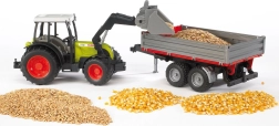 Le chargeur frontal est entièrement fonctionnel et facilement amovible, la cabine est vitrée et le compartiment moteur peut être ouvert. Particularité: un second volant avec bras rallongé s’insère par le toit dans la cabine et facilite grandement la direction. La remorque est une fidèle reproduction d’un modèle réel à deux essieux – elle possède des ridelles latérales et arrière ouvrantes et une plate-forme basculante pour un chargement et un déchargement réalistes.