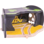 Ce tunnel en bois avec motif de caverne crâne offre deux entrées ou sorties. Grâce aux crânes sur corde qui peuvent être ouverts, il stimule l'imagination des enfants et leur motricité fine. L'ensemble est compatible avec la plupart des grandes marques de chemins de fer en bois.
