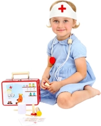 Les enfants adoreront la mallette médicale en bois, qui stimule leur créativité et leurs compétences sociales. Ce set offre une excellente occasion de jouer au docteur, aidant à développer les compétences linguistiques et sociales de l’enfant.