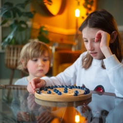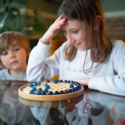 Grâce à une fabrication de qualité à partir de matériaux durables, le jeu est résistant et agréable au toucher. Parfait pour jouer en silence, développer la concentration et la planification des coups – et il fait également bel effet dans une chambre d’enfant ou un salon.