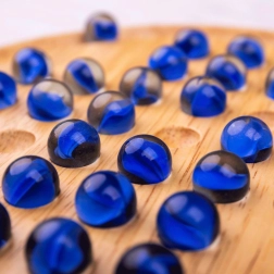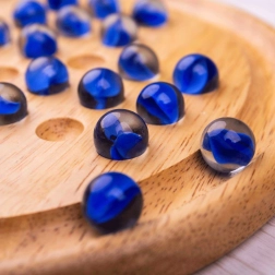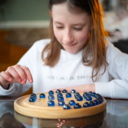 Le plateau circulaire en bois lisse et les billes en verre brillantes assurent une sensation agréable de jeu et une longue durabilité.
