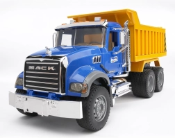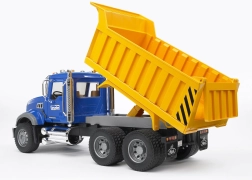 Le Bruder MACK Granit camion benne est un modèle fidèle inspiré d'un véhicule américain, fabriqué avec des matériaux de qualité. Grâce au capot basculant et aux pièces mobiles, les enfants peuvent facilement voir le moteur et s'amuser dans un environnement de chantier.