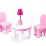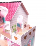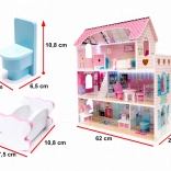 Maison de poupée en bois 70 cm avec éclairage LED – rose, MDF, avec meubles