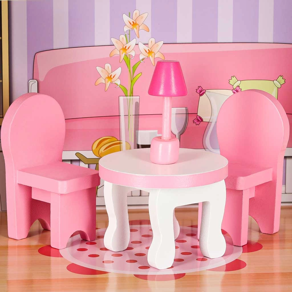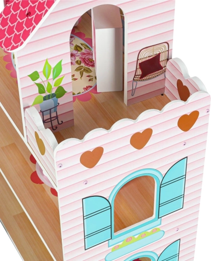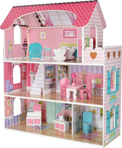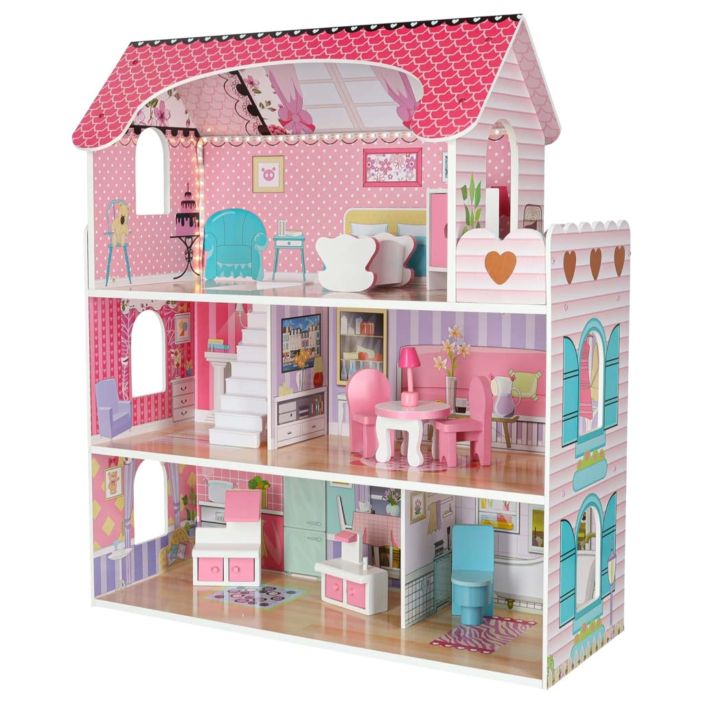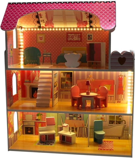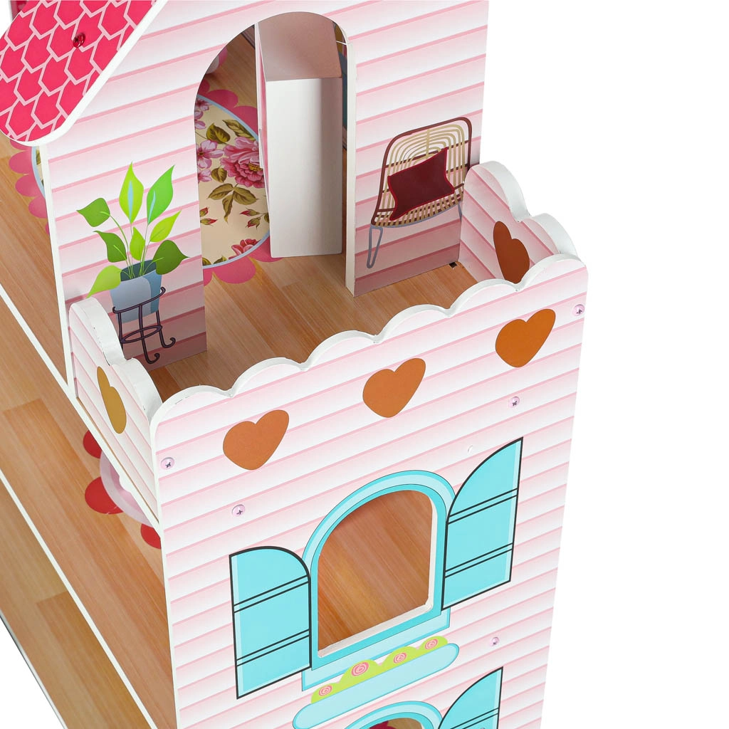 Maison de poupées en bois avec éclairage LED, 70 cm, rose