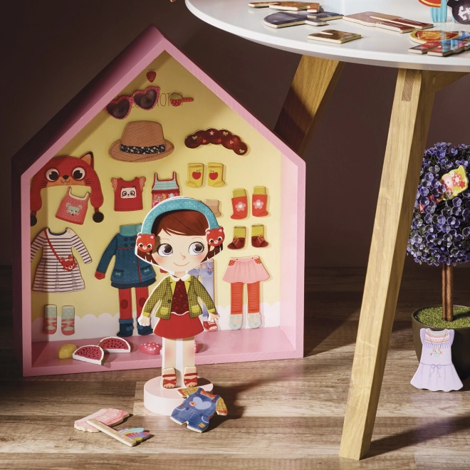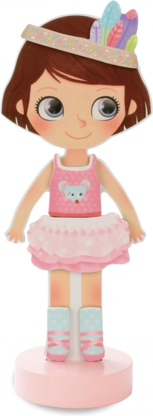 La poupée d’habillage magnétique Chloe est le jouet idéal pour les enfants qui aiment la mode et le style. Son socle en bois stable assure un habillage confortable et une belle présentation des tenues. Grâce au riche ensemble d’éléments magnétiques, on peut composer d’innombrables looks – des robes et manteaux jusqu’aux bonnets et chaussures.