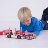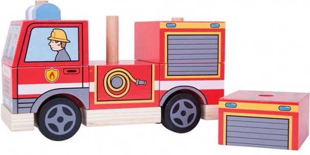 Ce jouet astucieux associe amusement et apprentissage : les enfants empilent les pièces sur des tiges en bois, entraînent leurs capacités de coordination, la reconnaissance des formes et des couleurs, puis se lancent dans une histoire d’action avec le camion de pompiers terminé. Le bois robuste, les bords lisses et les couleurs marquées assurent un jeu sûr et attrayant.