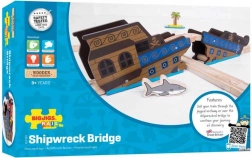 Le pont épave de navire Bigjigs Rail apporte une touche d’aventure à votre univers ferroviaire. Les deux pièces solides se montent facilement en un pont spectaculaire ou un passage, permettant aux trains de rouler au-dessus et à travers l’épave décorée. Le thème des pirates et des vagues marines stimule les histoires créatives et des heures de jeu.