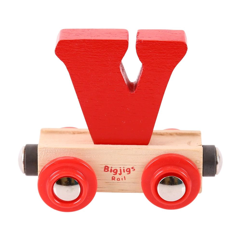 Le wagon en bois avec la lettre V enrichit à merveille tout circuit de train et soutient l’apprentissage de l’alphabet de manière ludique. Grâce aux attelages magnétiques, il se connecte facilement à d’autres wagons et locomotives. La lettre peut être retirée et combinée avec d’autres, permettant aux enfants de composer des prénoms, des mots ou des messages.