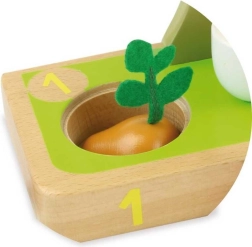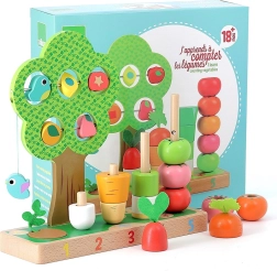 Ce jouet en bois de qualité réunit amusement et apprentissage. Les enfants empilent et enfilent carottes, poireaux, petites tomates et d’autres formes sur des chevilles numérotées de 1 à 5, acquérant naturellement le comptage ainsi que le tri par couleurs et tailles. Un petit arbre avec éléments coulissants est inclus pour explorer et entraîner la coordination œil–main.