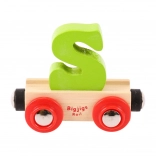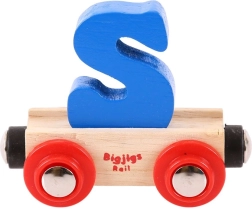Le wagon avec la lettre S enrichit tout circuit de train en bois et aide les enfants à découvrir l’alphabet de manière ludique. La lettre est facilement amovible et peut être remplacée à volonté par d’autres lettres ou chiffres – idéal pour composer des prénoms, des mots et des messages.