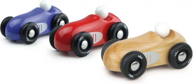 Une mini voiture de course élégante en bois laqué qui ravira les petits comme les grands fans de sport automobile. Elle possède des roues en caoutchouc massives pour une conduite fluide, une construction en bois solide et un design rouge intemporel. Parfaite pour jouer comme pour la décoration. Fabriquée en France.