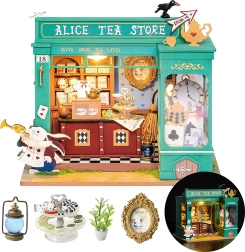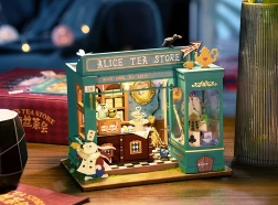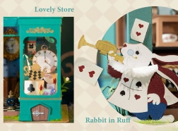 Découvrez un monde miniature plein de fantaisie : une boutique de thé aux tons verts avec motifs de Lapin Blanc, de montre de poche et de sol en damier crée l’atmosphère d’un thé de l’après-midi européen. Une fois l’éclairage LED allumé, le modèle devient une décoration enchanteresse à l’ambiance du soir agréable.