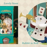 Découvrez un monde miniature plein de fantaisie : une boutique de thé aux tons verts avec motifs de Lapin Blanc, de montre de poche et de sol en damier crée l’atmosphère d’un thé de l’après-midi européen. Une fois l’éclairage LED allumé, le modèle devient une décoration enchanteresse à l’ambiance du soir agréable.