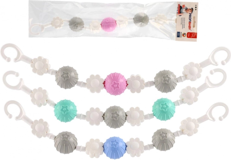 Les fleurs et les billes alternées aux textures variées stimulent le toucher, la vue et la concentration, et encouragent le bébé à saisir et à faire tourner.
