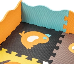Le tapis se monte facilement en surface de 114 × 114 cm ou en petit parc de 90 × 90 × 16 cm. Les formes amovibles fonctionnent comme un trieur : les enfants les remettent dans les ouvertures correspondantes, entraînent leur motricité fine, leur logique et leur créativité. Les pièces sont imperméables et faciles à nettoyer avec un chiffon humide, ce qui les rend idéales pour la chambre d’enfant comme pour la salle de jeux.