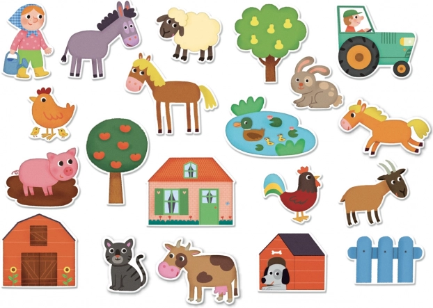 Ce set apprécié offre aux enfants une découverte ludique de la vie à la ferme. Les magnets en bois sont robustes, agréables en main et, grâce à une impression de qualité, joliment colorés. Parfaits pour le jeu libre, la narration d’histoires et les premières reconnaissances des animaux.