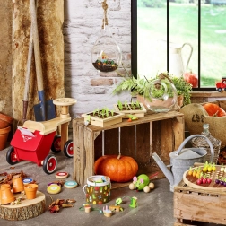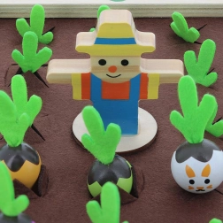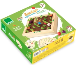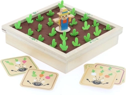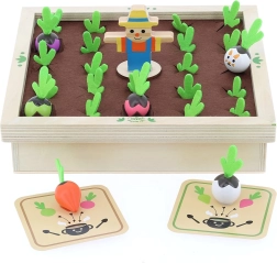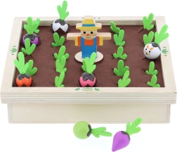 Découvrez la magie du potager à la table familiale. Ce beau jeu en bois avec éléments en feutrine propose des figurines colorées de légumes et des cartes-recettes grâce auxquelles les enfants apprennent à reconnaître les formes, les couleurs et les relations logiques. Jouez au mémo classique ou cuisinez ensemble une soupe selon les recettes – toujours avec la petite dose de suspense qu’apporte le lapin malicieux.