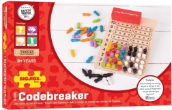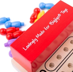Le jeu Logik de Bigjigs Toys est un excellent jouet de voyage et outil éducatif. Les joueurs doivent deviner la combinaison de quatre chevilles colorées de leur adversaire et ont seulement dix tentatives, garantissant tension et concentration. Les couleurs des chevilles sont très vives, ce qui aide à l'apprentissage de la reconnaissance des couleurs et améliore la coordination des mouvements.