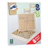 Le jeu contient 145 pièces avec des lettres, qui peuvent être facilement rangées dans la pratique boîte en bois adaptée aux voyages une fois le jeu terminé. Le jeu aide les enfants non seulement à enrichir leur vocabulaire, mais aussi à apprendre l'orthographe.
