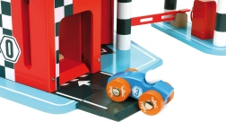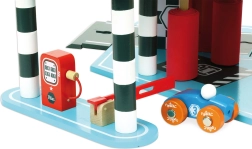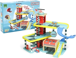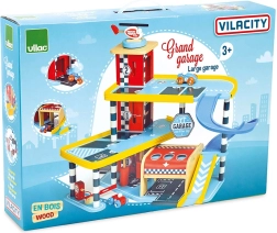 Découvrez le plaisir de jouer avec le garage en bois VILAC Vilacity ! Ce grand garage à étages propose un ascenseur fonctionnel, des portes coulissantes, une barrière de parking, une pompe à carburant et des brosses de lavage. Sont inclus 2 petites voitures et un hélicoptère, une compatibilité totale avec la collection VILACITY et une fabrication respectueuse de l’environnement.
