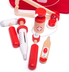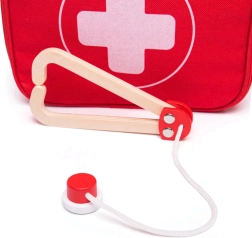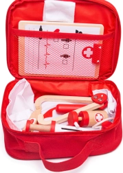 Le set est fabriqué avec des matériaux provenant de sources responsables et conforme aux normes de sécurité européennes actuelles. Grâce aux pièces en bois, aux textiles doux et aux bords lisses, le jeu est sûr et agréable. Cadeau idéal pour les petits docteurs dès 3 ans.