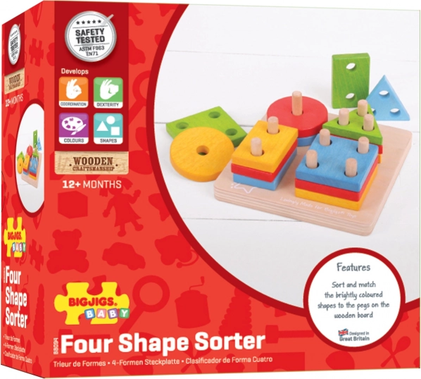 Enfiler les formes sur les chevilles entraîne la prise en main, la coordination œil–main et la patience. Un premier jouet pédagogique idéal pour les petits explorateurs.