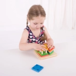 • 17 pièces – base en bois avec chevilles et ensemble de formes colorées