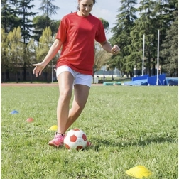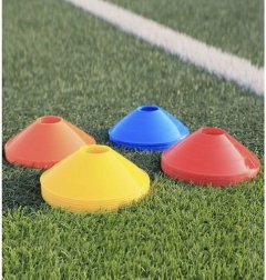 Jaune, orange, rouge, vert et bleu facilitent la répartition des exercices, des équipes ou des zones. Excellente visibilité en intérieur comme en extérieur.