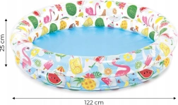 La piscine de dimensions 122x25 cm offre un espace parfait pour le divertissement et le rafraîchissement des enfants.